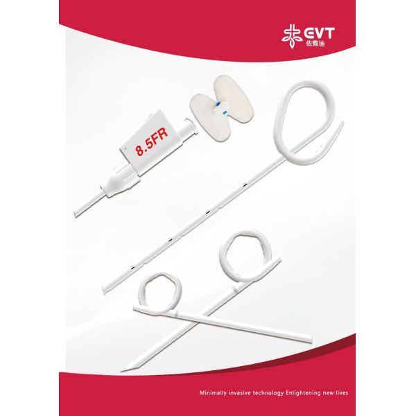 Components: Drainage catheter, cannula needle (optional), metal stiffening cannula (optional), plastic stiffening cannula (optional), straightening tube (optional), catheter fixation device (optional)